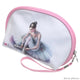 Bag with a curved zipper in saffiano leather featuring a dance-themed print (ballet slippers on a tutu), by Girardi.