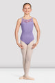 The Bloch Remi short sleeve leotard features a round neckline with heart-shaped detailing, soft mesh cap sleeves, and a floral mesh back. Part of the Bloch Girls Petal Princess collection, blending delicate ruched mesh with soft floral prints.