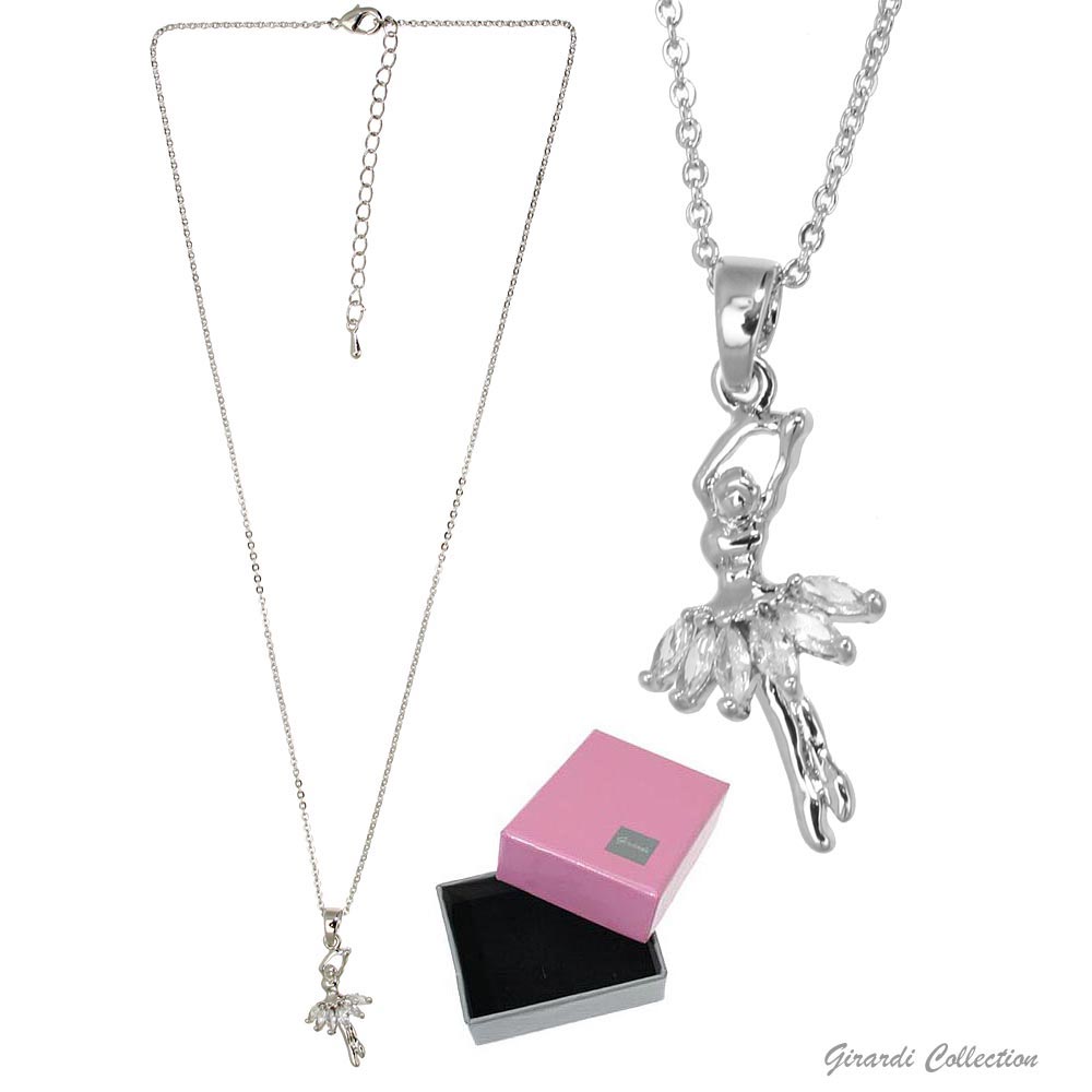 Colar em aço com pendente de bailarina em aço e zircónicas brancas, da marca Girardi.