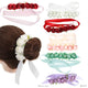 Satin hair ribbon with white and pink flowers, Ø4 cm.
