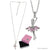Colar em aço com pendente de bailarina em aço e zircónicas rosa, da marca Girardi.