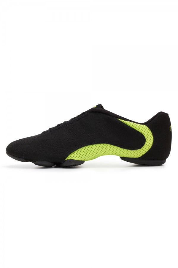 Contour canvas combina um sapato de jazz de sola dividida com um tênis de dança, oferecendo ao dançarino total flexibilidade, conforto e apelo.