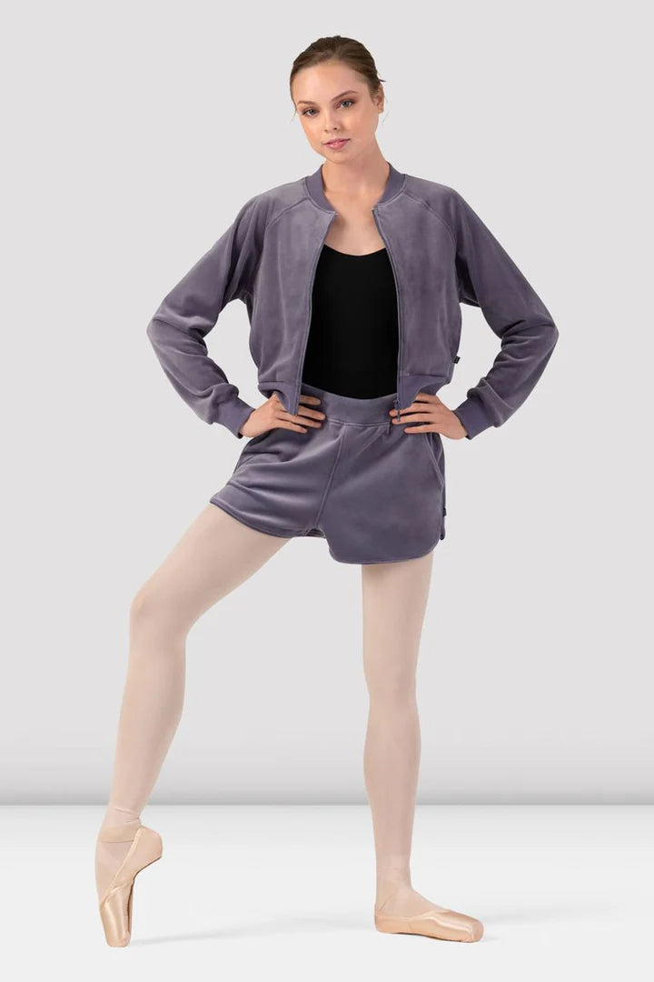 O Casaco Amanda de Veludo para Mulheres possui mangas raglan, punhos, gola e barra canelados, além de fechamento frontal com zíper. Combine com a calça de treino feminina Gloria de veludo para um conjunto luxuoso e perfeito para se aquecer.