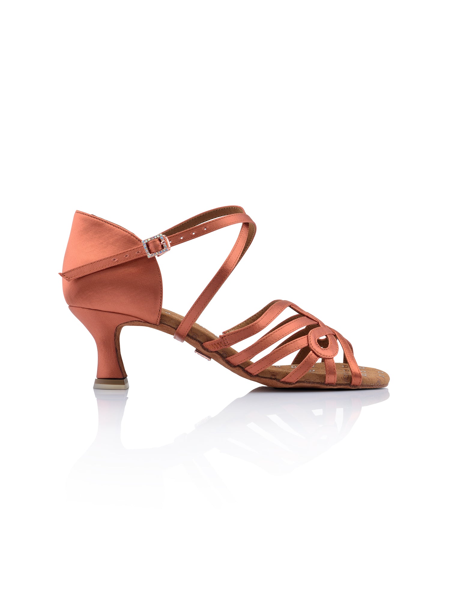 Dance sandal in flesh satin with ankle strap intersection