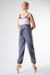 Two-tone jumpsuit. This comfortable jumpsuit is made of Polar fleece with thin straps, a drawstring waist, and elastic ankles.
