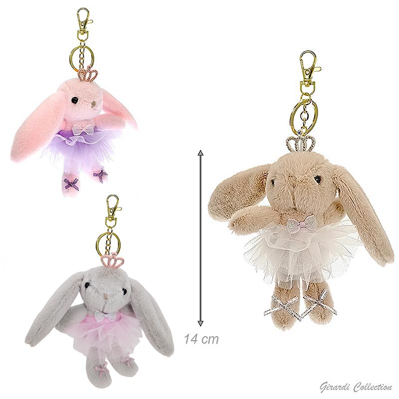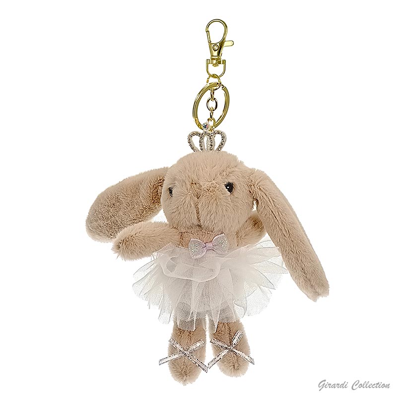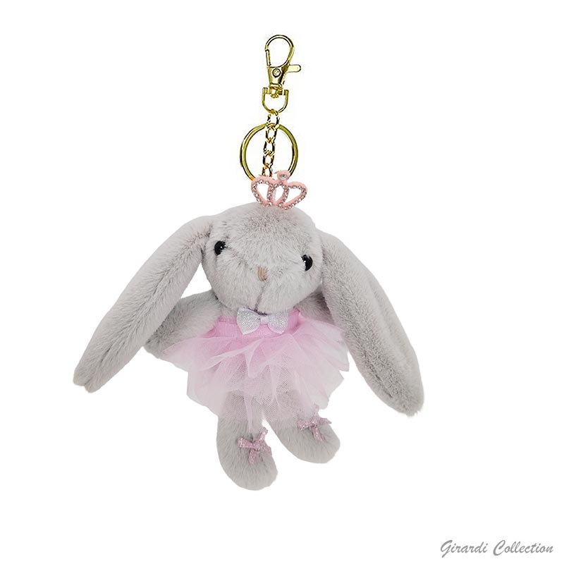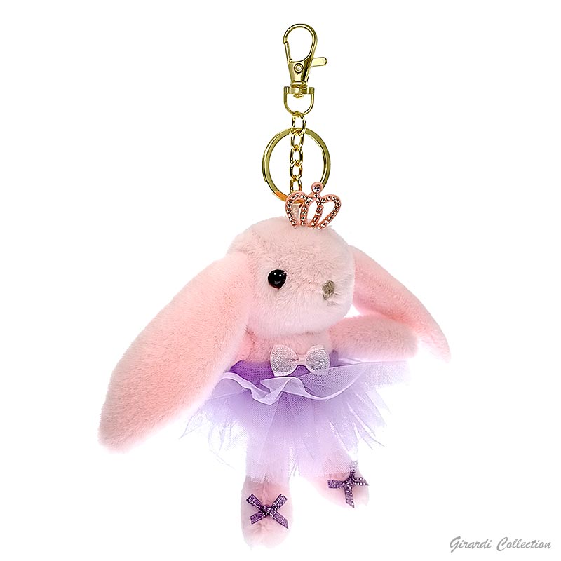 Porta-chaves coelha bailarina super macia com tiara de brilhantes.